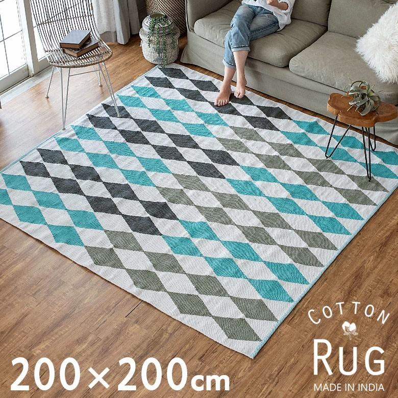 ラグ カーペット ラグマット ダイヤ柄 ひし形 綿100 200 200cm 正方形 ブルー コットンキリム風 幾何学模様 コットン100 目安2畳 34206 34206 Elements 通販 Yahoo ショッピング