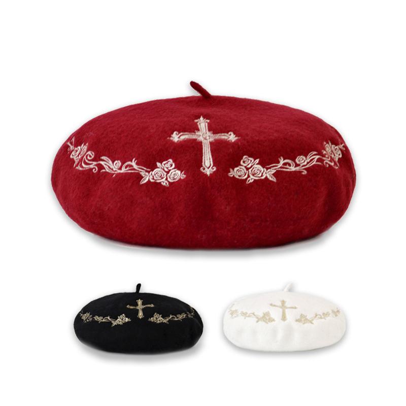 ベレー帽 刺繍入り 十字架 薔薇 定番デザイン ベレーキャップ シンプル ウール 秋冬 レディース マニッシュ 帽子 ぼうし Hat 10994 おとりよせ Com 通販 Yahoo ショッピング