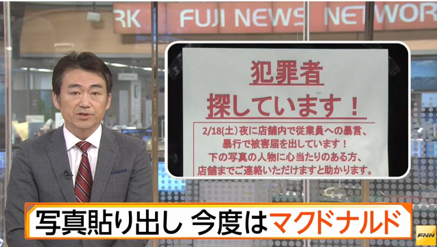 日本マクドナルド 暴行犯人の画像 店頭に貼り出し 飲食店 ぬふふ Com