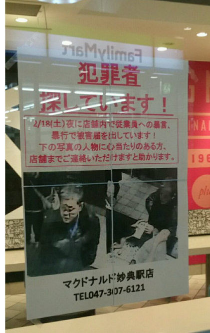 タメになる 面白い と思ったらシェア 千葉のマックで暴行した客の画像を張り出す