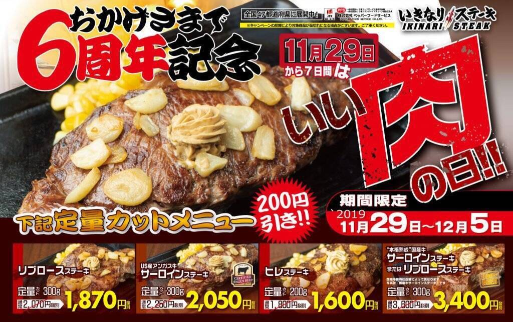 11月29日はいい肉の日 いきなり ステーキ が創業6周年キャンペーン 2019年11月28日 エキサイトニュース