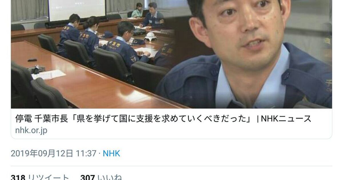 Nhkの 停電 千葉市長 県を挙げて国に支援を求めていくべきだった という見出しの記事に 熊谷俊人千葉市長が反論 国も県も電力会社も私たちも 今できることをしているので 前向きな報道をして頂けるとありがたいです Togetter